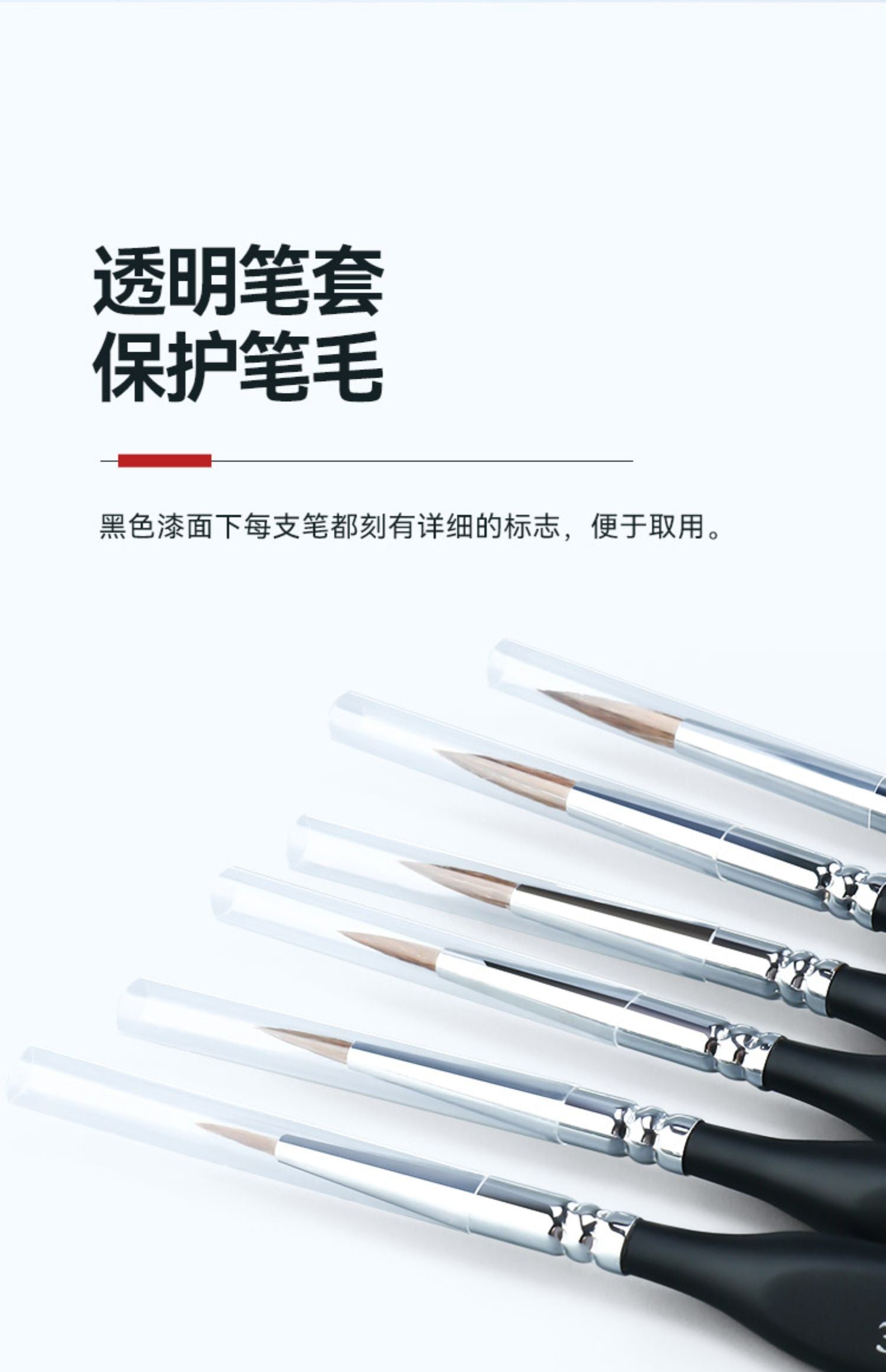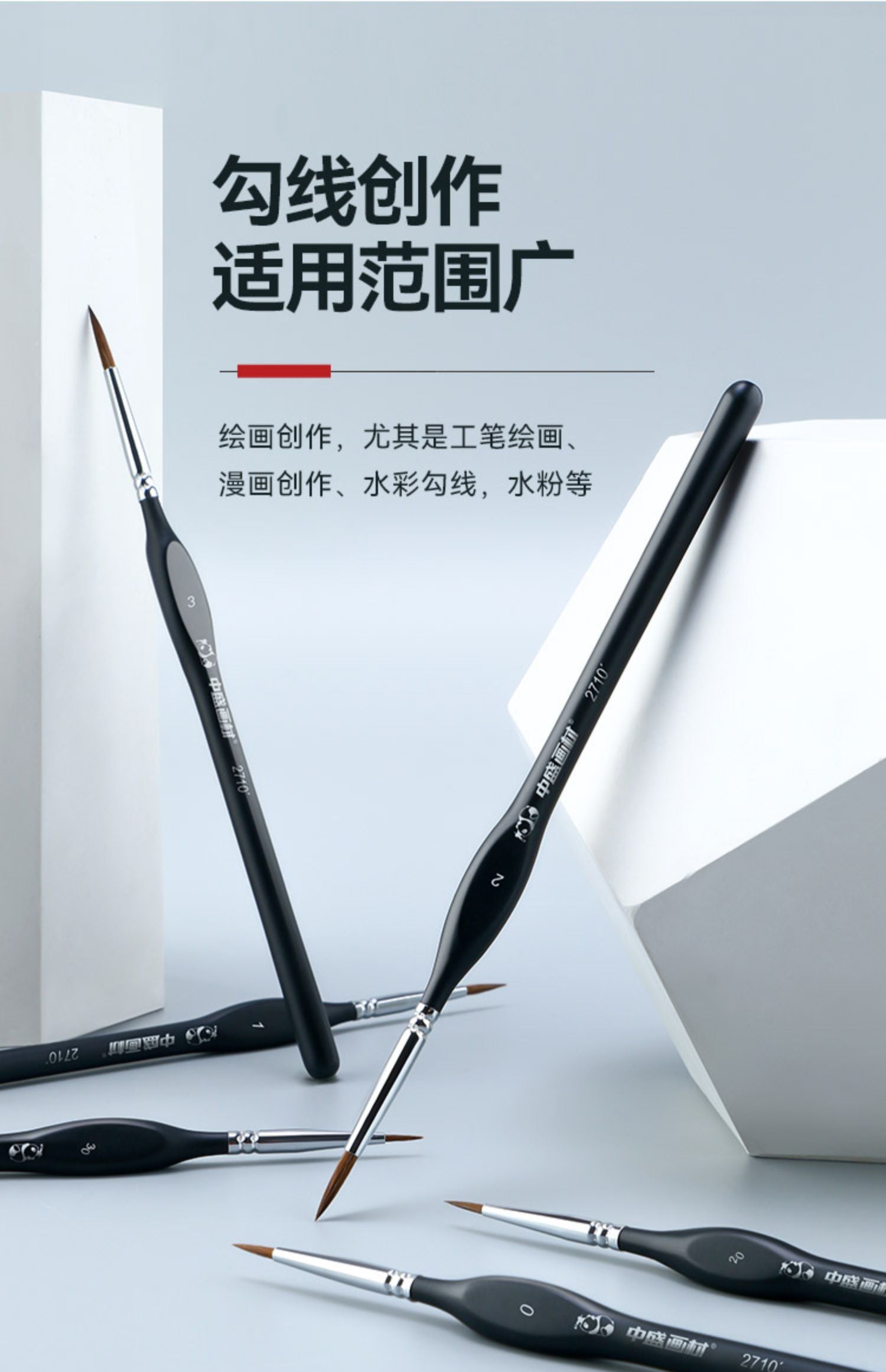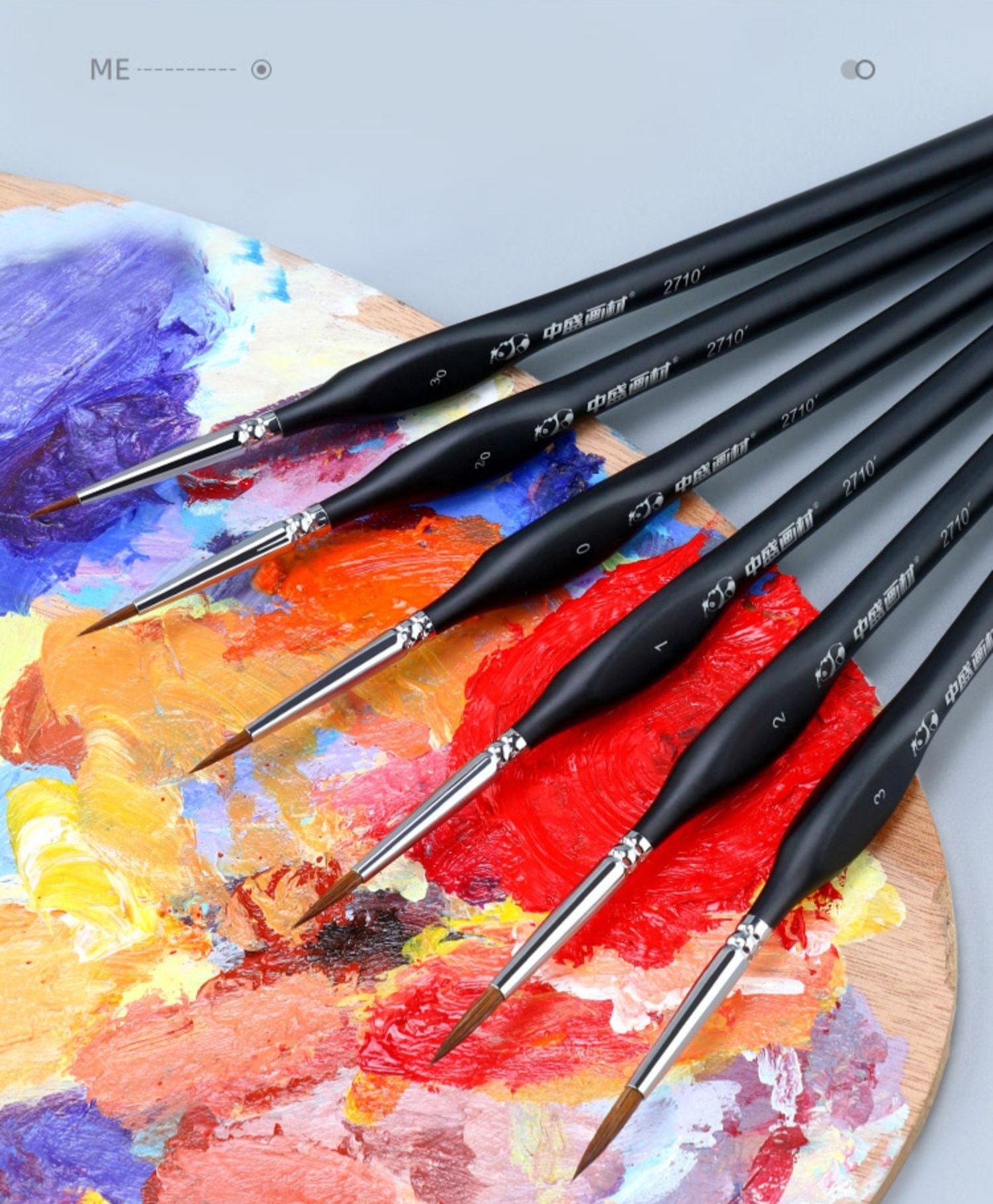 高级尼龙刷非常灵活,即使是最小的笔尖也是如此。它们非常适合丙烯画、水彩画、水粉画、珐琅画、水墨画、油画。