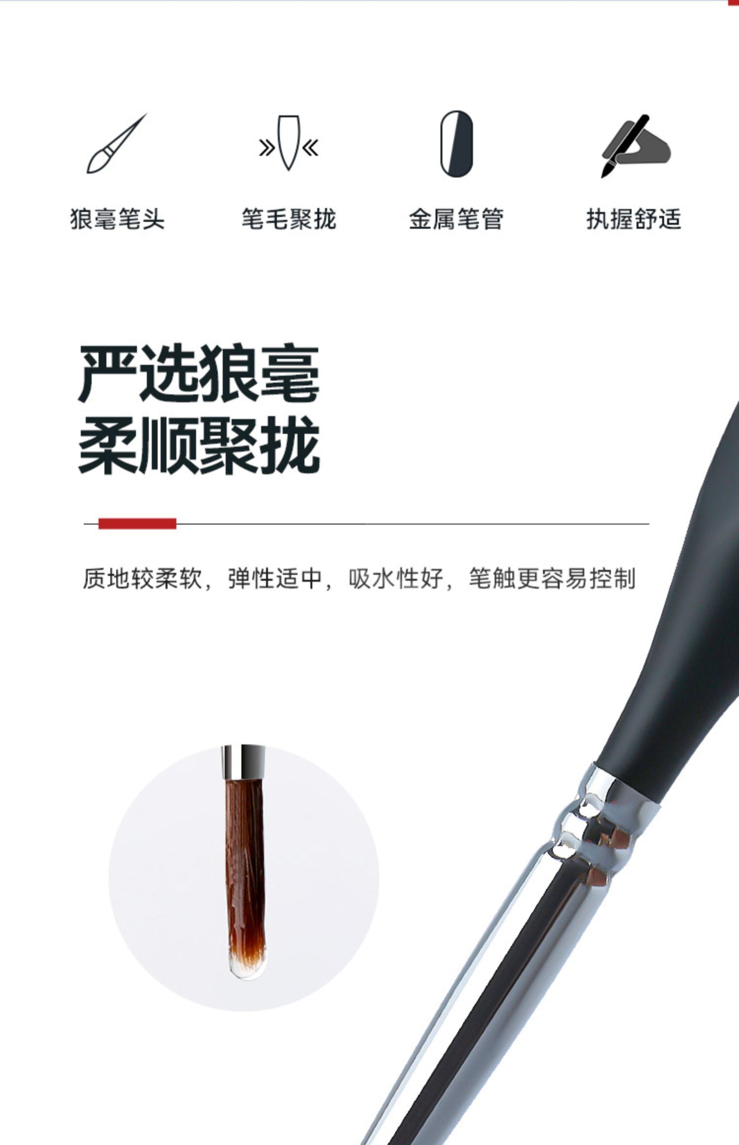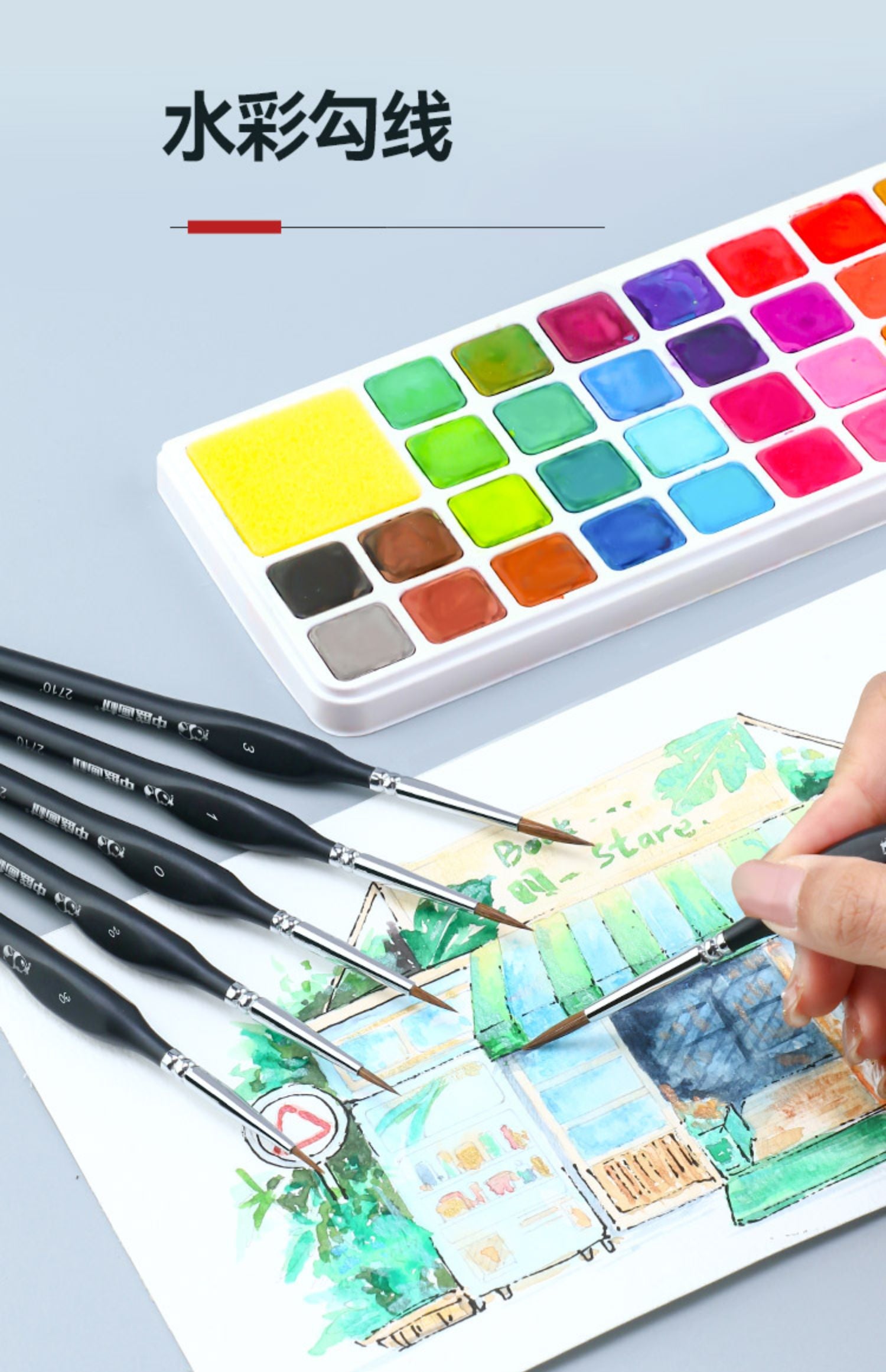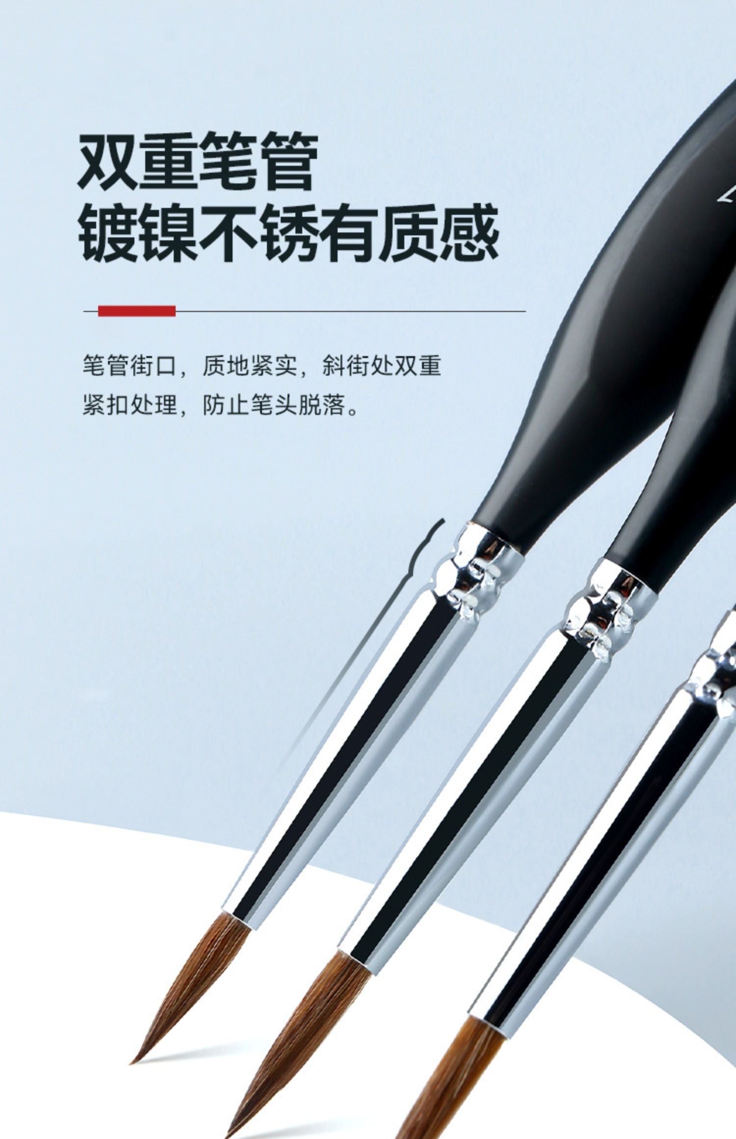 高级尼龙刷非常灵活,即使是最小的笔尖也是如此。它们非常适合丙烯画、水彩画、水粉画、珐琅画、水墨画、油画。